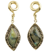 Textured Labradorite Stone Brass Hangers/Ear Weights Version 22