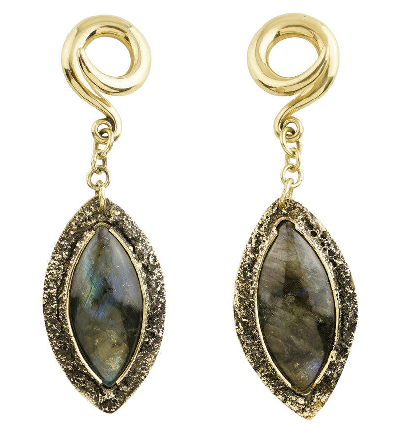 Textured Labradorite Stone Brass Hangers/Ear Weights Version 23