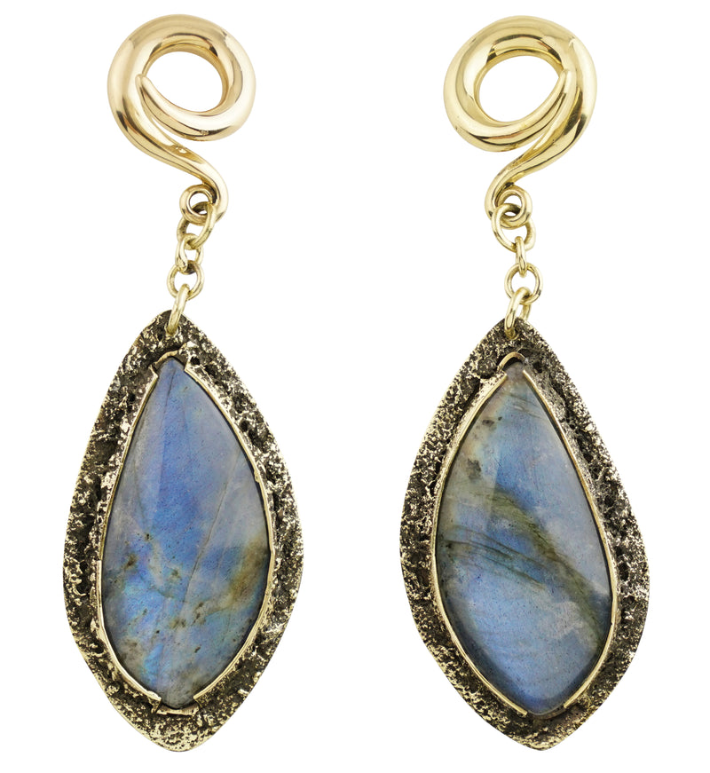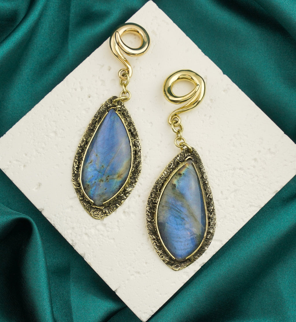 Textured Labradorite Stone Brass Hangers/Ear Weights Version 30