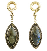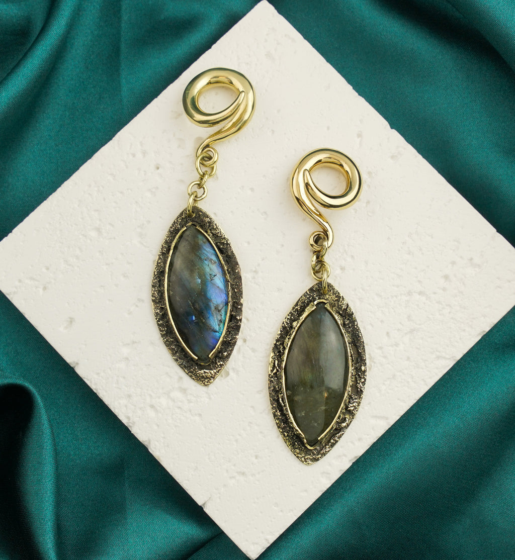 Textured Labradorite Stone Brass Hangers/Ear Weights Version 31