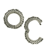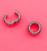 These textured white brass hinged ear lobe cuffs are perfect for healed lobes/piercings. Sold in pairs, the cuffs feature a hinged design for easy opening and closing and an inner diameter of 3/8" (10mm) and total diameter of 9/16" (14mm). Gauge size is 0G (8mm) so must be 0G (8mm) or bigger to wear. They're ideal for wearing with other hinged rings or ear weights, or simply for wearing on their own. The brass material is not meant for long term wear and may oxidize under extreme conditions.
