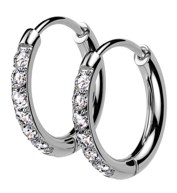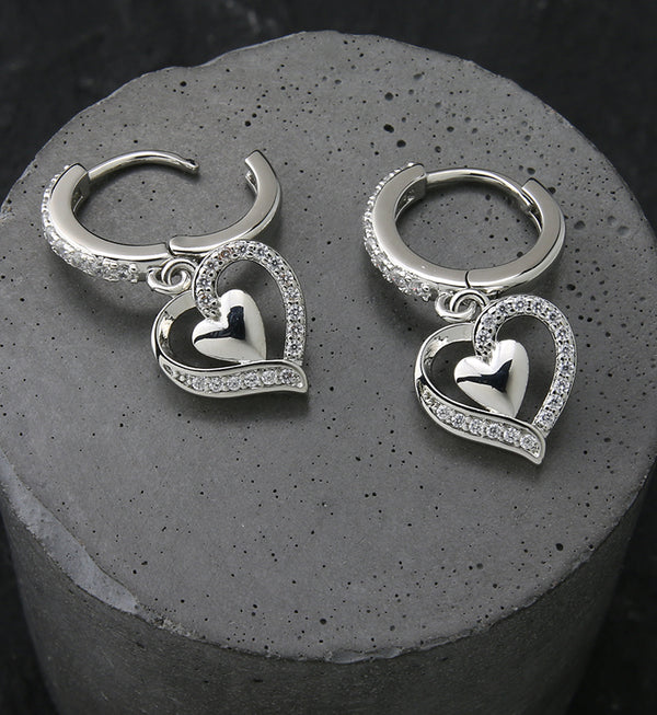 Double Heart CZ Stainless Steel Hoop EarringsDouble Heart CZ Stainless Steel Hoop Earrings