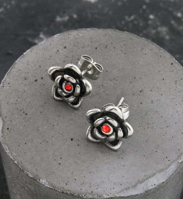 Broken Skull Red CZ Stainless Steel Stud EarringsBusted Skull Red CZ Stainless Steel Stud Earrings