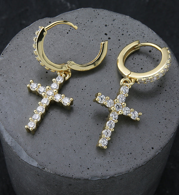 Gold PVD Cross CZ Stainless Steel Hoop EarringsGold PVD Cross CZ Stainless Steel Hoop Earrings