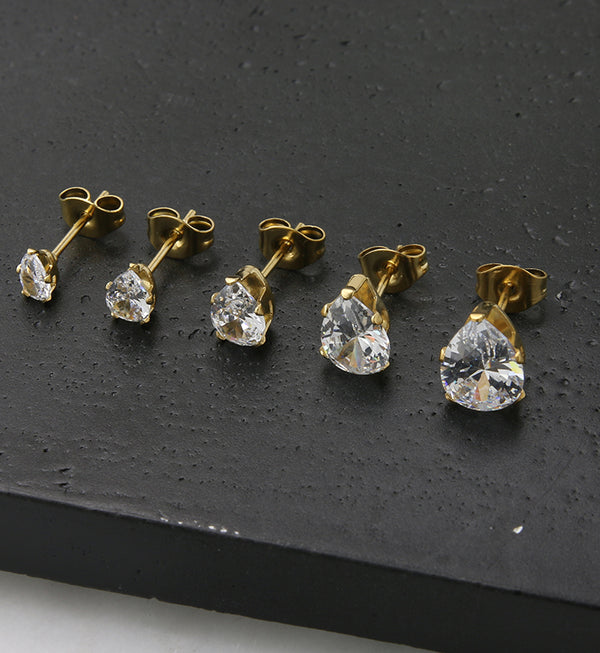 Gold PVD Teardrop CZ Stainless Steel EarringsGold PVD Teardrop CZ Stainless Steel Earrings