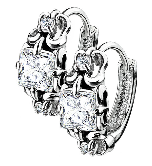 Square Clear CZ Stainless Steel Textured Cylinder Back Stud EarringsSquare Clear CZ Stainless Steel Textured Cylinder Back Stud Earrings