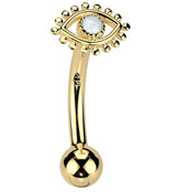 14kt Gold White Opalite Evil Eye Threadless Curved Barbell