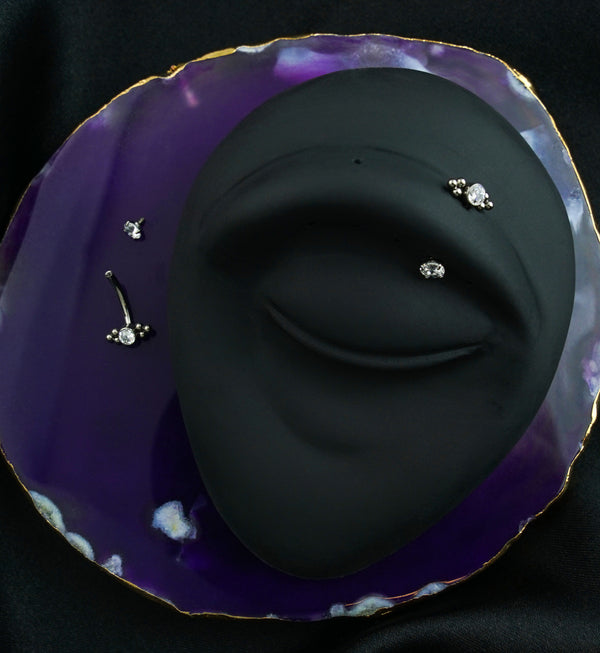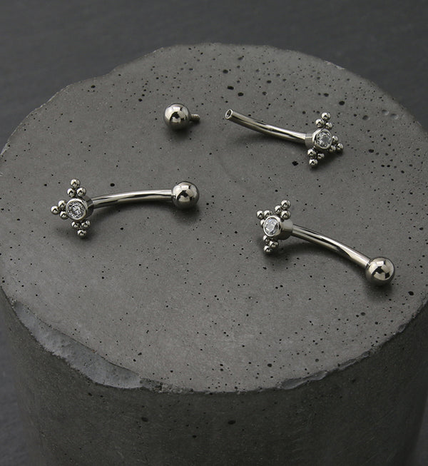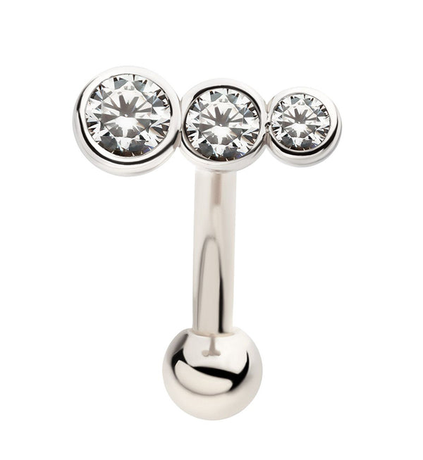 Curve Triple Clear CZ Threadless Titanium Curved BarbellCurve Triple Clear CZ Threadless Titanium Curved Barbell