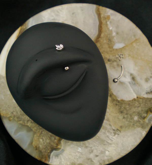 14kt Gold Triple Marquise Clear CZ Threadless Curved Barbell14kt Gold Triple Marquise Clear CZ Threadless Curved Barbell