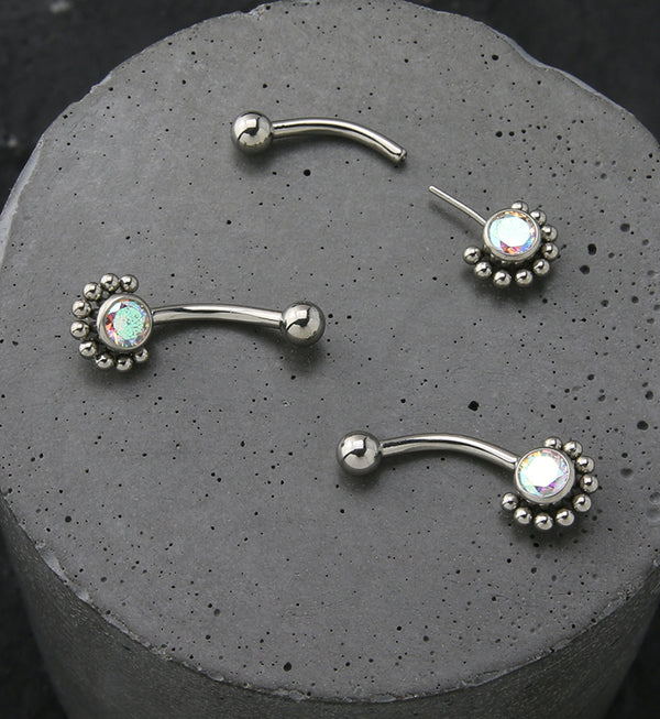 Bezel Set CZ Gem Disk Titanium Curved Threadless BarbellBezel Set CZ Gem Disk Titanium Curved Threadless Barbell