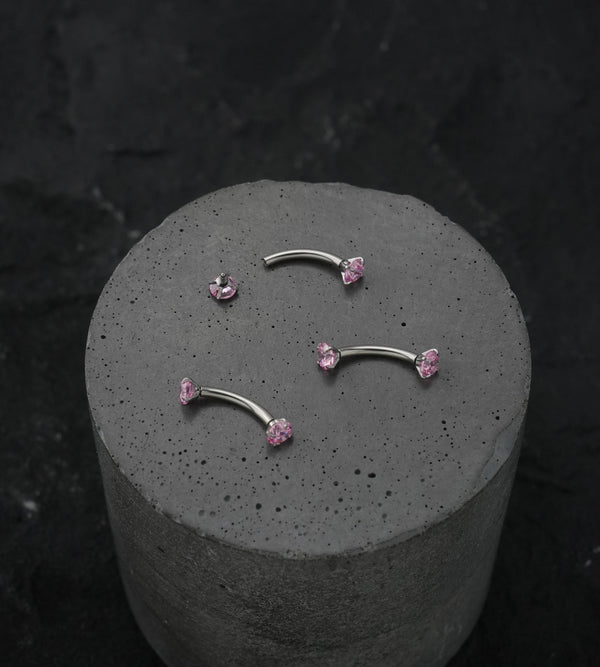 Beaded Pink CZ Titanium Threadless Curved BarbellBeaded Pink CZ Titanium Threadless Curved Barbell