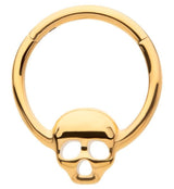 Gold PVD Centered Skull Head Titanium Hinged Segment Ring