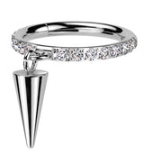 Side Facing Cone Dangle Clear CZ Row Titanium Hinged Segment Ring
