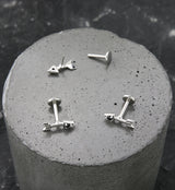 Threadless labret that consists of an arrow design that has a black cz accent. Made from 316L stainless steel. Size is 18G with a 1/4" (6mm) length. 4mm flat back. Top design measures at 9mm x 4mm. Sold individually (1pc).