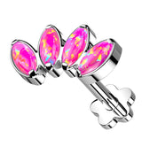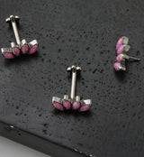 Threadless labrets with a beautiful pink opalite spiked design on top and a flower shaped back. Size is 16G. Top size is about 10mm. Flower back is 4mm. Made from ASTM F-136 titanium. Synthetic white opalite. Length is 5/16" (8mm). Sold individually (1 pc).