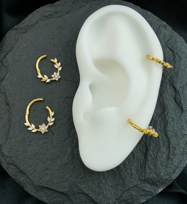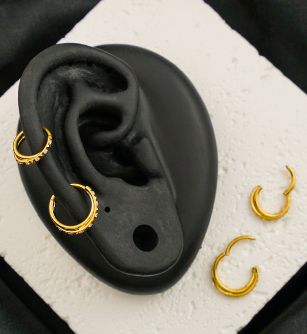 Arena Gold PVD Triple Cluster Bead CZ Hinged Segment Hoop Ring