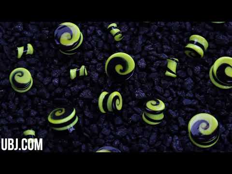 Sold in pairs Black & Yellow swirl design Double Flares Each piece is unique We do our best to provide you a matching pair 2G - 3/4"