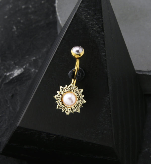 Gold PVD Pink Pearl Sun Stainless Steel Belly Button Ring