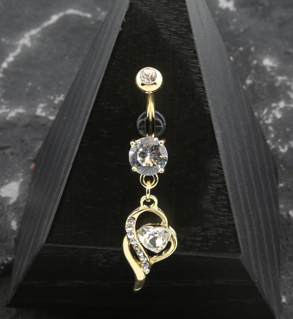 Golden Heart With Clear CZ Stainless Steel Belly Button Ring