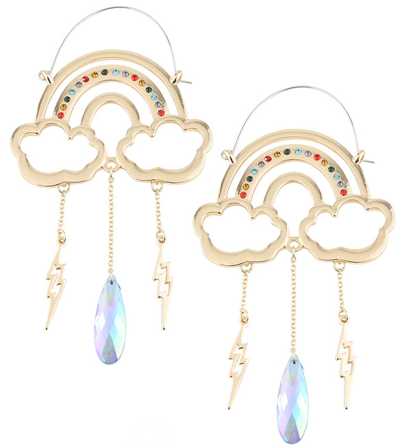 Gold PVD Rainbow Dangle Bolt Rainbow Crystal Stainless Steel Plug HoopsGold PVD Rainbow Dangle Bolt Rainbow Crystal Stainless Steel Plug Hoops