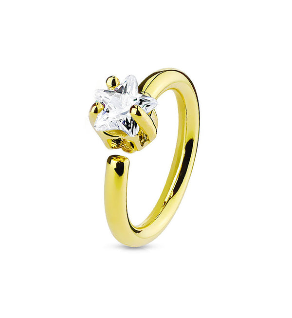 16G PVD Gold CZ Star Annealed Cartilage Hoop Ring