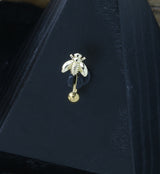 Cute curved barbell that has bee design on top. Complete with a 3mm ball on the bottom. Nice piece for your daith or eyebrow piercing! Made from gold pvd on 316L stainless steel and is 16G. Length is 5/16" (8mm). Externally threaded. Intended for healed piercings. Sold individually (1pc).