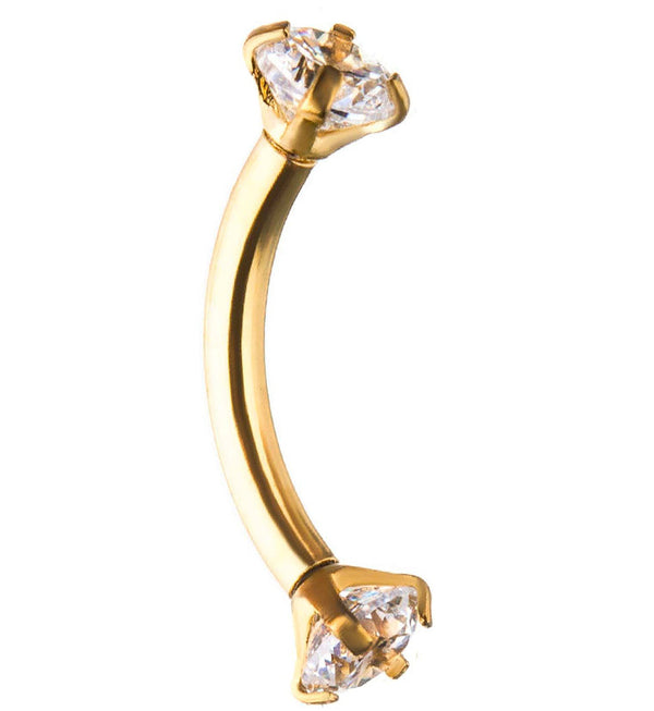 Gold PVD Clear CZ Prong Set Stainless Steel Curved BarbellGold PVD Clear CZ Prong Set Stainless Steel Curved Barbell