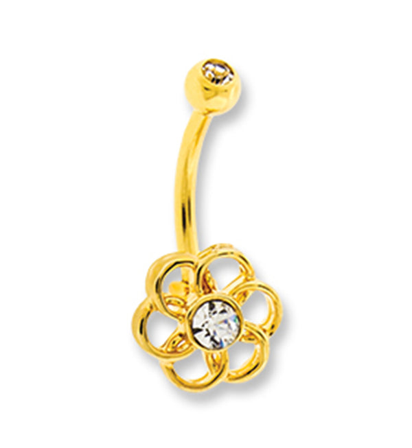 Gold PVD Flower Clear CZ Titanium Threadless Curved BarbellGold PVD Flower Clear CZ Titanium Threadless Curved Barbell