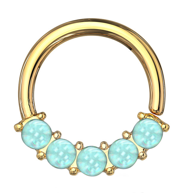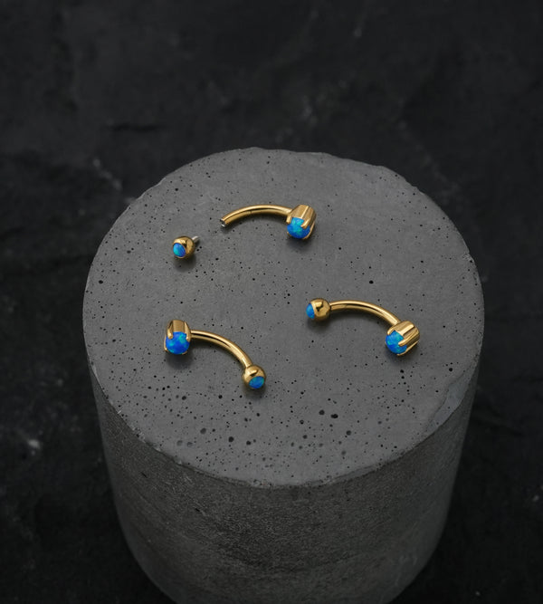 Gold PVD Blue Opalite Prong Set Stainless Steel Curved BarbellGold PVD Blue Opalite Prong Set Stainless Steel Curved Barbell
