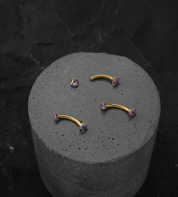 Gold PVD Amethyst CZ Prong Set Stainless Steel Curved BarbellGold PVD Amethyst CZ Prong Set Stainless Steel Curved Barbell