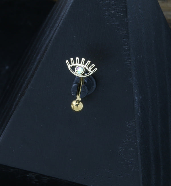 Gold PVD Evil Eye Rainbow Aurora CZ Curved BarbellGold PVD Evil Eye Rainbow Aurora CZ Curved Barbell