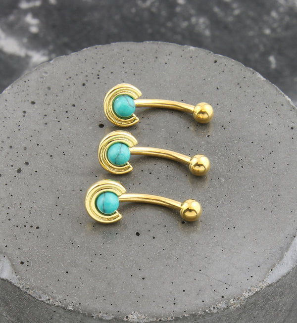 Gold PVD Halo Turquoise Howlite Stone Stainless Steel Curved BarbellGold PVD Halo Turquoise Howlite Stone Stainless Steel Curved Barbell