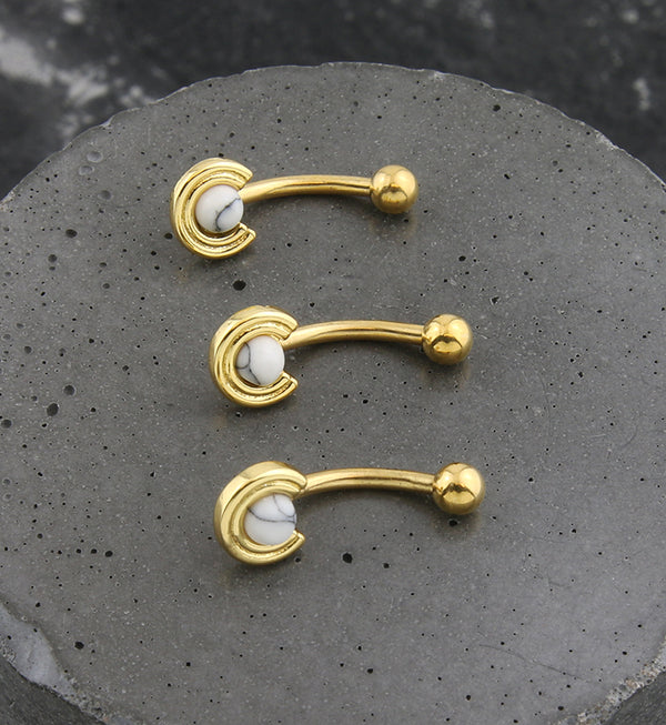 Gold PVD Halo White Howlite Stone Stainless Steel Curved BarbellGold PVD Halo White Howlite Stone Stainless Steel Curved Barbell