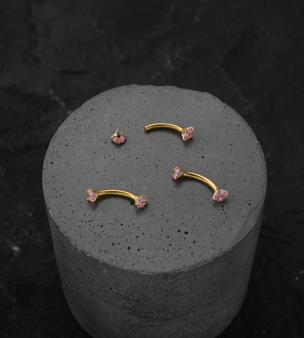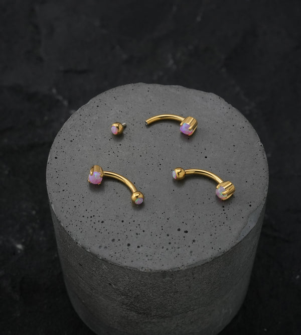 Gold PVD Pink Opalite Prong Set Stainless Steel Curved BarbellGold PVD Pink Opalite Prong Set Stainless Steel Curved Barbell