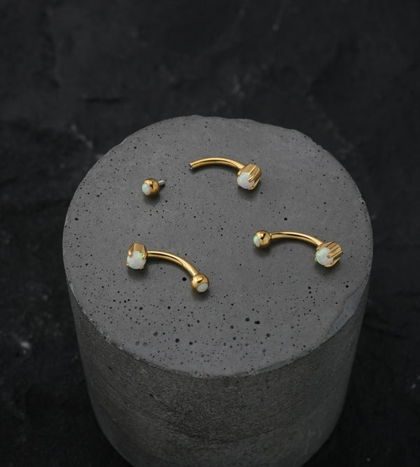 Gold PVD White Opalite Prong Set Stainless Steel Curved BarbellGold PVD White Opalite Prong Set Stainless Steel Curved Barbell