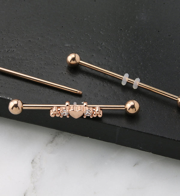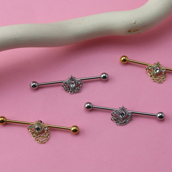An industrial piercing is a showstopper, stretching from one side of the ear cartilage to the other. That makes searching for industrial piercing jewelry really fun. To accommodate this piercing, you’ll need an industrial barbell, which come in several different styles. A gold industrial ring is always very popular, especially if they’re 14k gold, because that makes them safer for your ear. Even better, some pick a rose gold barbell to accentuate their style. What kind of industrial jewelry will you choose?