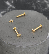 Internally threaded labret piece that has a crescent moon design on the end. Design measures at about 4mm. Made from gold pvd on ASTM F-136 titanium. Size is 16G. Available in two lengths: 1/4" (4mm) and 5/16" (8mm). Sold individually (1pc).