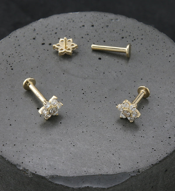 14kt Gold Flower CZ Internally Threaded Labret14kt Gold Flower CZ Internally Threaded Labret