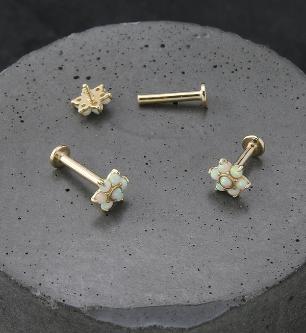 14kt Gold Flower White Opalite Internally Threaded Labret14kt Gold Flower White Opalite Internally Threaded Labret