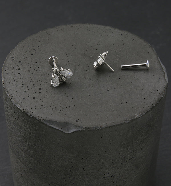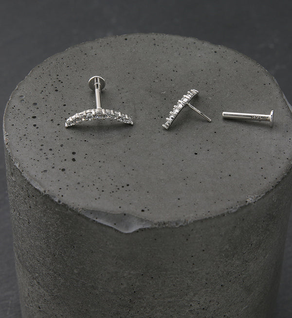 14kt White Gold CZ Top Flat Back Labret Post16G 14kt White Gold CZ Top Flat Back Labret Post