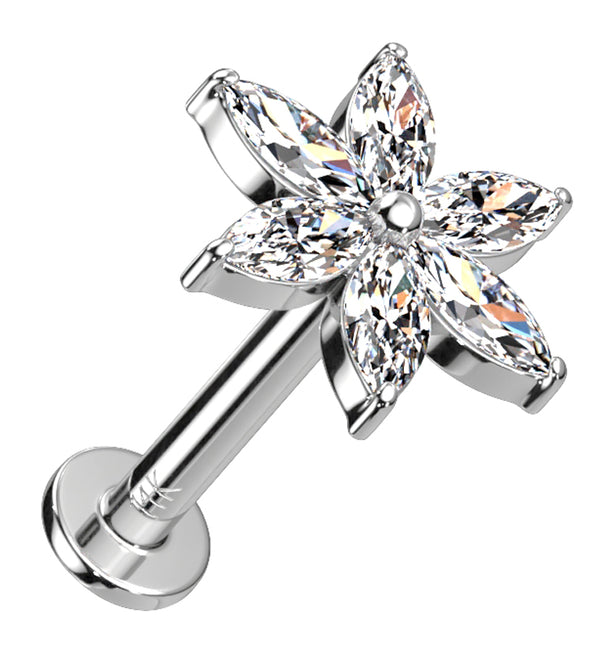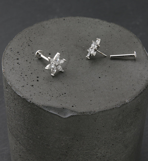 14kt White Gold Starflower CZ Threadless Labret14kt White Gold Starflower CZ Threadless Labret