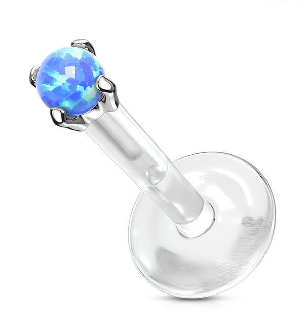 16G Blue Opalite Top 14kt White Gold Bioflex Labret Post
