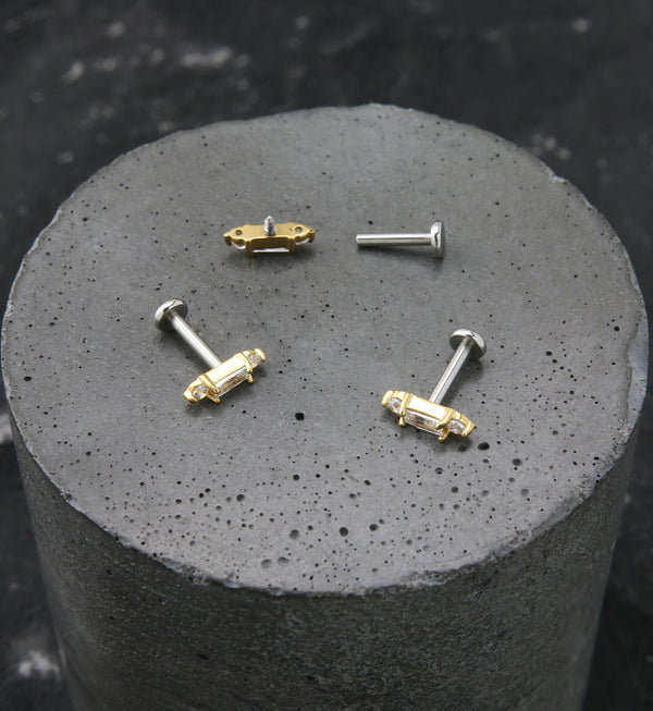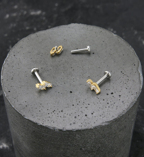 Gold PVD Double Slant Clear CZ Stainless Steel Internally Threaded LabretGold PVD Double Slant Clear CZ Stainless Steel Internally Threaded Labret
