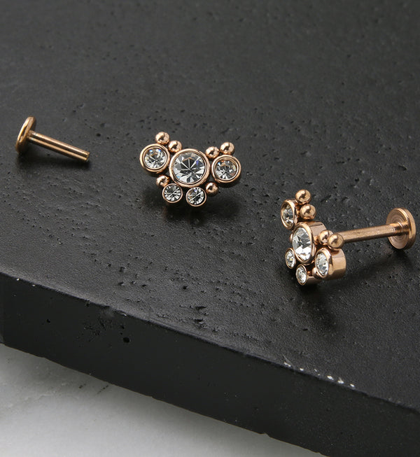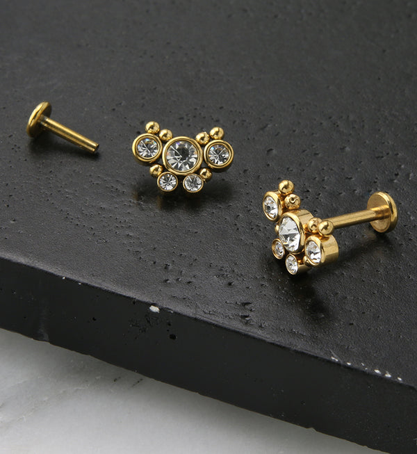 Gold PVD Retro Floral Clear CZ Titanium Threadless LabretGold PVD Retro Floral Clear CZ Titanium Threadless Labret