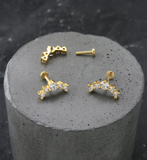 Gold PVD Diadem Clear CZ Internally Threaded Titanium LabretGold PVD Diadem Clear CZ Internally Threaded Titanium Labret