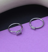 Half moon hoop ring that is great for nose and/or cartilage piercings. The annealed (bendable) 14kt white gold hoop makes this piece easy to insert and take out. Clear cubic zirconia gems make up the half moon design on top. Size is 20G with an inner diameter of 5/16" (8mm). Sold individually. For healed piercings.