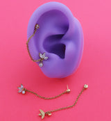 24kt Gold PVD Sepal Clear CZ Connector Cartilage Rolo Chain Threadless Tops