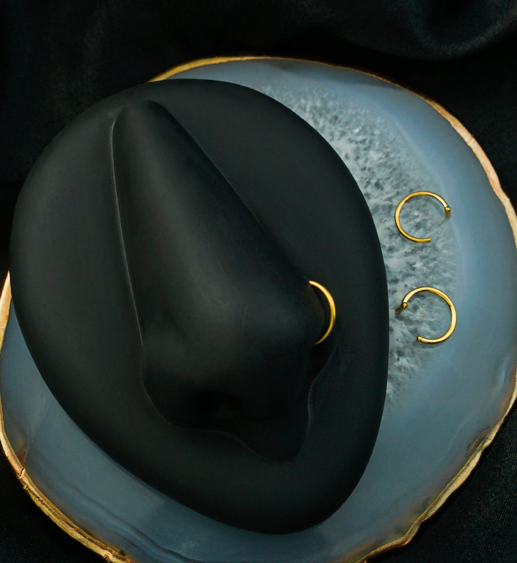 Created from ASTM F136 titanium with a PVD gold plating. Its bendable design ensures a comfortable fit, and with two size options (20G & 18G), you can find the great fit. Inner diameter is about 5/16" (8mm). Sold individually. For healed piercings.
