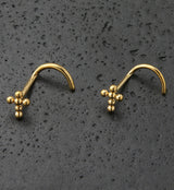 Golden nose screws made from gold pvd on ASTM F-136 titanium with a beaded cross design. They come in both 20G and 18G and are sold individually. Length is 1/4" (6mm). For healed piercings.