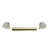 Gold PVD Double Round CZ Prong Set Stainless Steel Barbell